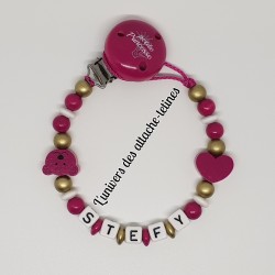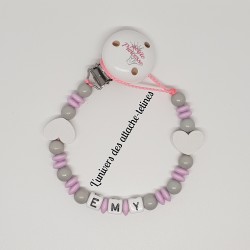 Vous trouverez ici toute la collection d'attache tétine personnalisée pour votre bébé. Un large choix selon vos goûts et vos envies. Toutes nos attaches tétinespersonnalisées sont conformes et répondent à la norme NF EN 71-3. Nos attachestétines personnalisées sont résistantes à la salive, à la transpiration, inoxydable, sans nickel, sans polluant, avec 2 ou 3 trous de ventilation.