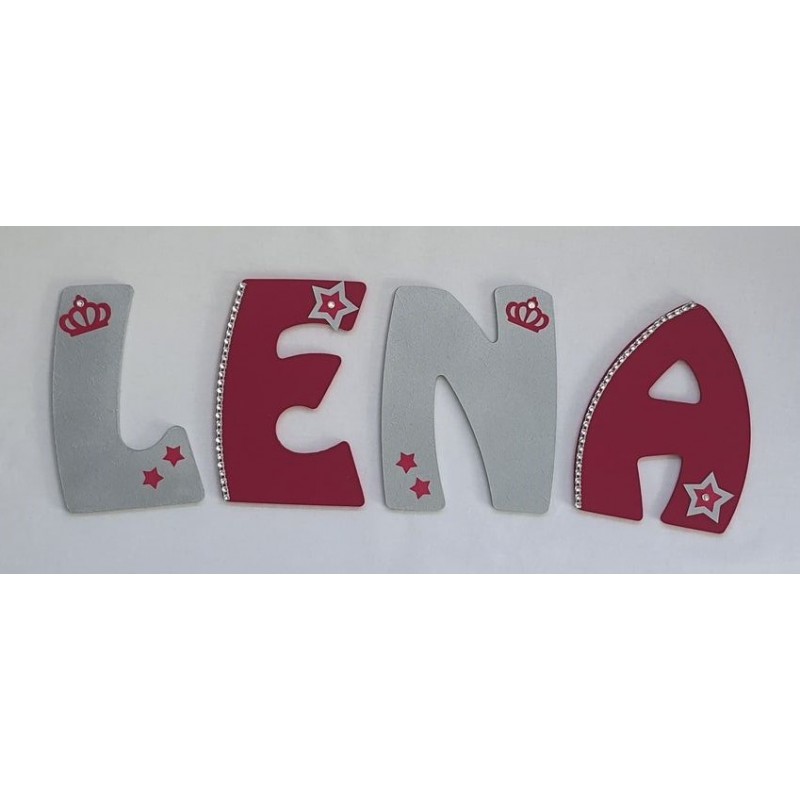 Prénom personnalisé à accrocher au mur, thème "Princesse" couleurs Rose Azo et Argenté.