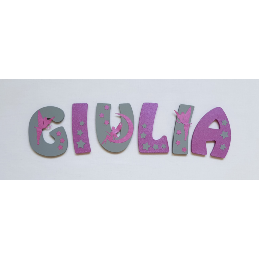 Prénom personnalisé à accrocher au mur, thème "Fée" couleurs Gris Neutre et Violet Bleu Iridescent.