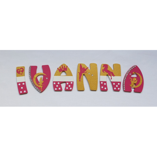 Prénom personnalisé à accrocher au mur, thème "Girly" couleurs Rose Vif et Or Iridescent.